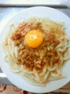 うどん、納豆、かつおぶし、たまご、めんつゆ