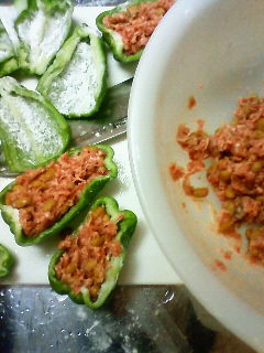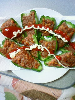 納豆ピーマンの肉詰め? ピーマンの納豆肉詰め?