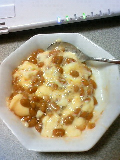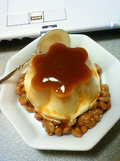 プリンと納豆の一体感はあまりないかも・・・(´・ω・`)