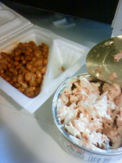 昨日とおなじにおわなっとうと、ツナ缶です。